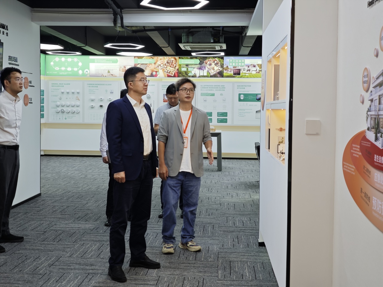 我司作为一家始终专注于全球高品质安全报警器研发与制造的高新技术企业,18年来稳步发展,在消防报警器领域积累了深厚的技术底蕴与市场口碑。在中国区市场部经理肖利军的陪同下,刘渊书记一行参观了企业展厅,详细了解烟雾报警器、燃气报警器、一氧化碳报警器等产品在互联报警、抗干扰性能及低功耗等方面的卓越表现。